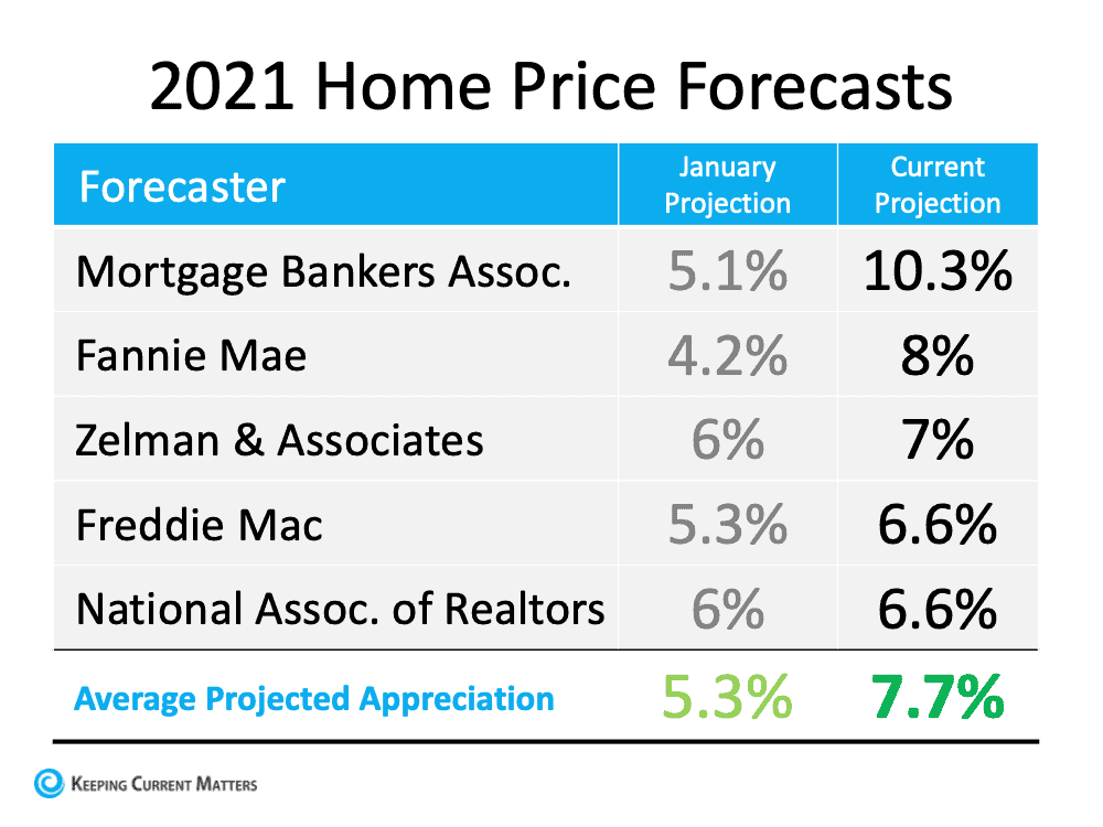 Entering 2021, there was some speculation that we might see price appreciation slow dramatically this year. Today, experts believe that won’t be the case. Home values will remain strong throughout the year.