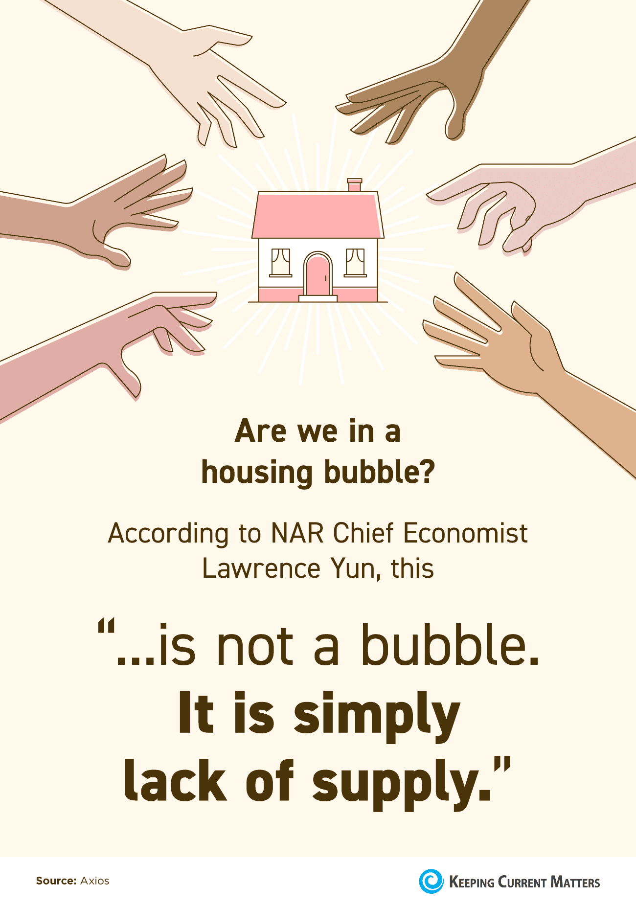 When addressing whether or not today’s high buyer competition and rising home prices are evidence of a housing bubble, Yun said that this “is not a bubble. It is simply lack of supply.”