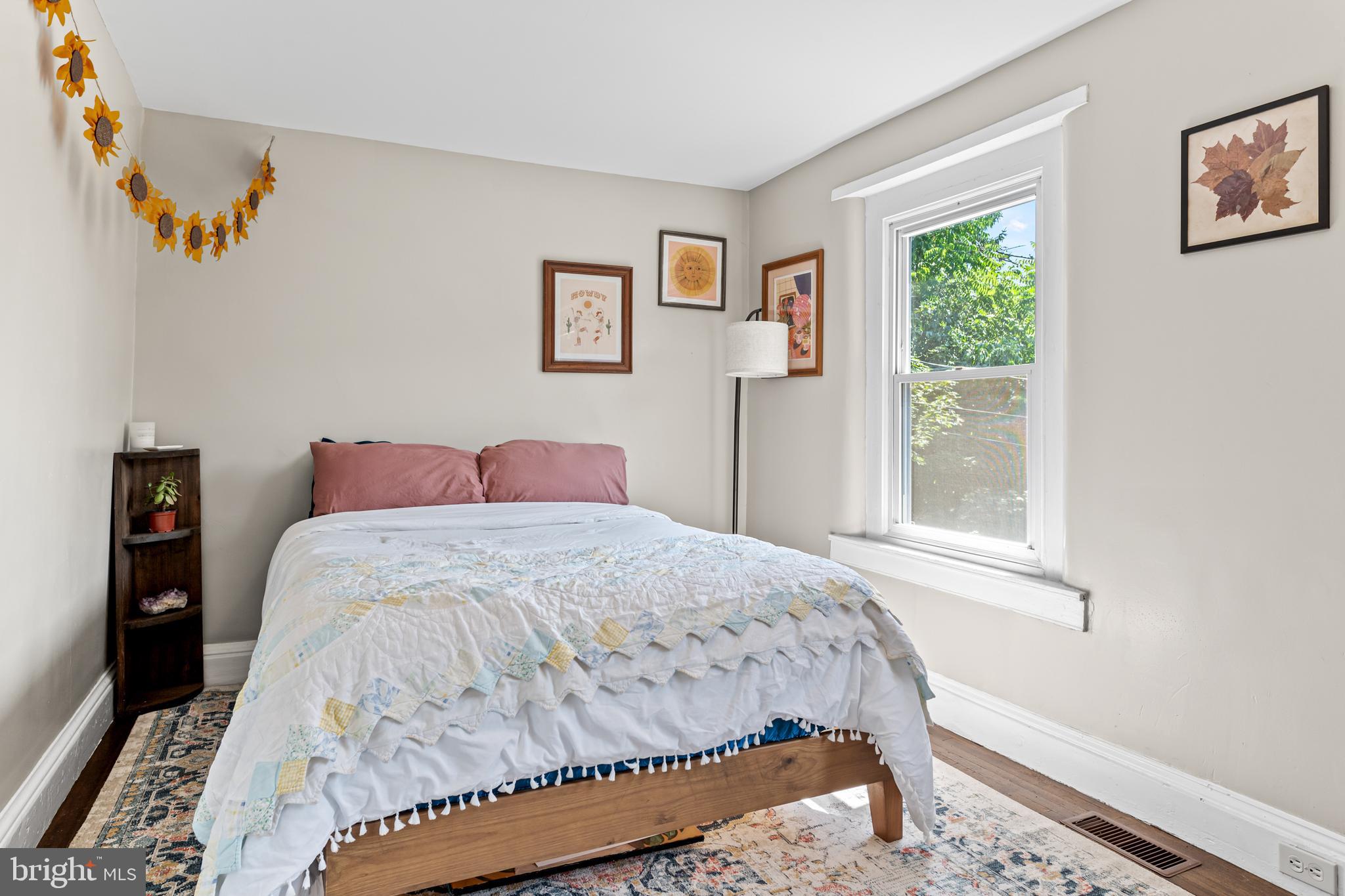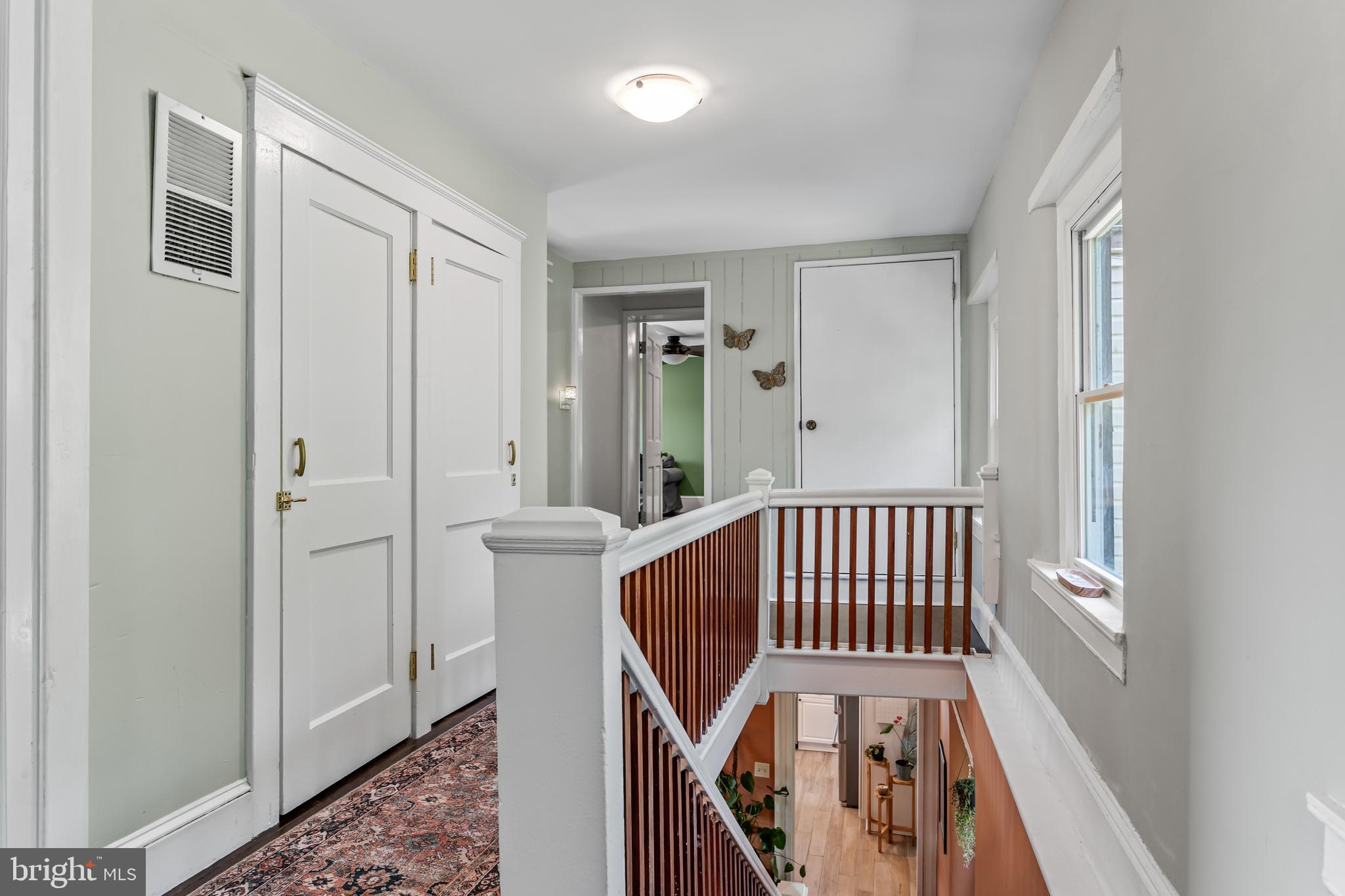 Head upstairs to find two well-sized secondary bedrooms that share a stylish full bathroom. The hallway offers storage closets and access to a floored walk-up attic, perfect for extra storage.