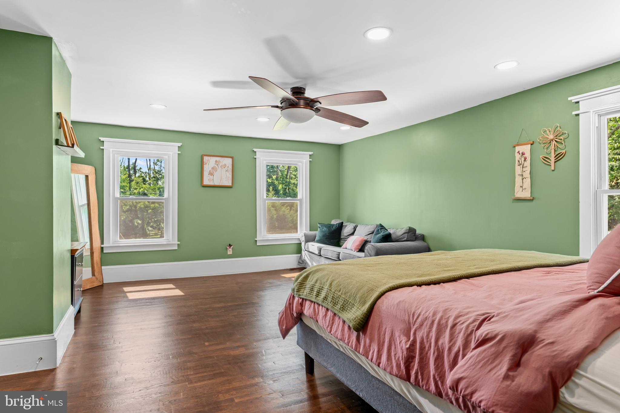 Unwind in the expansive primary bedroom. This haven features recessed lighting, a large ceiling fan, and a luxurious dressing room with built-in storage, mirrors, and a center island. The en-suite bathroom boasts stunning 24x24 tiles, a double sink vanity, and a spacious shower with subway tile accents.
