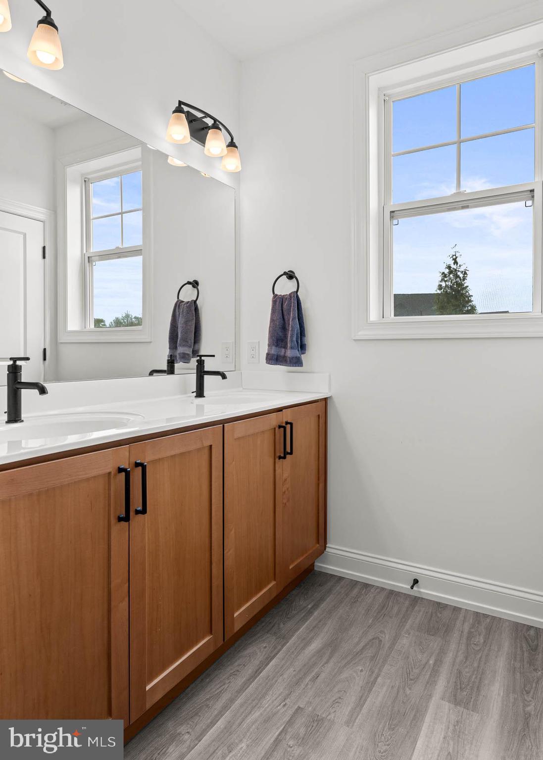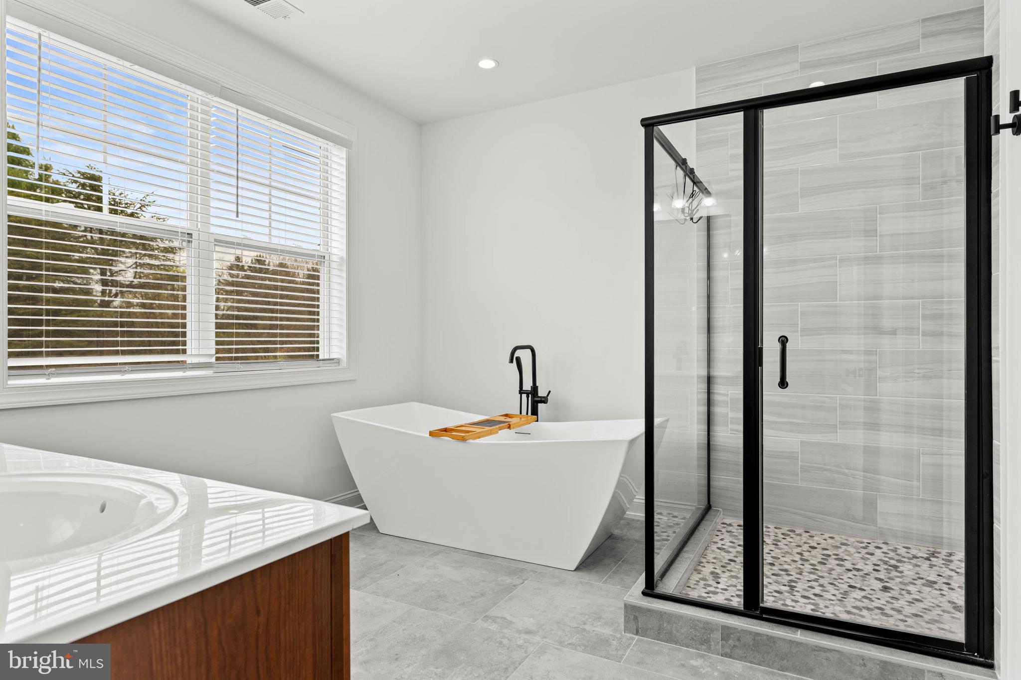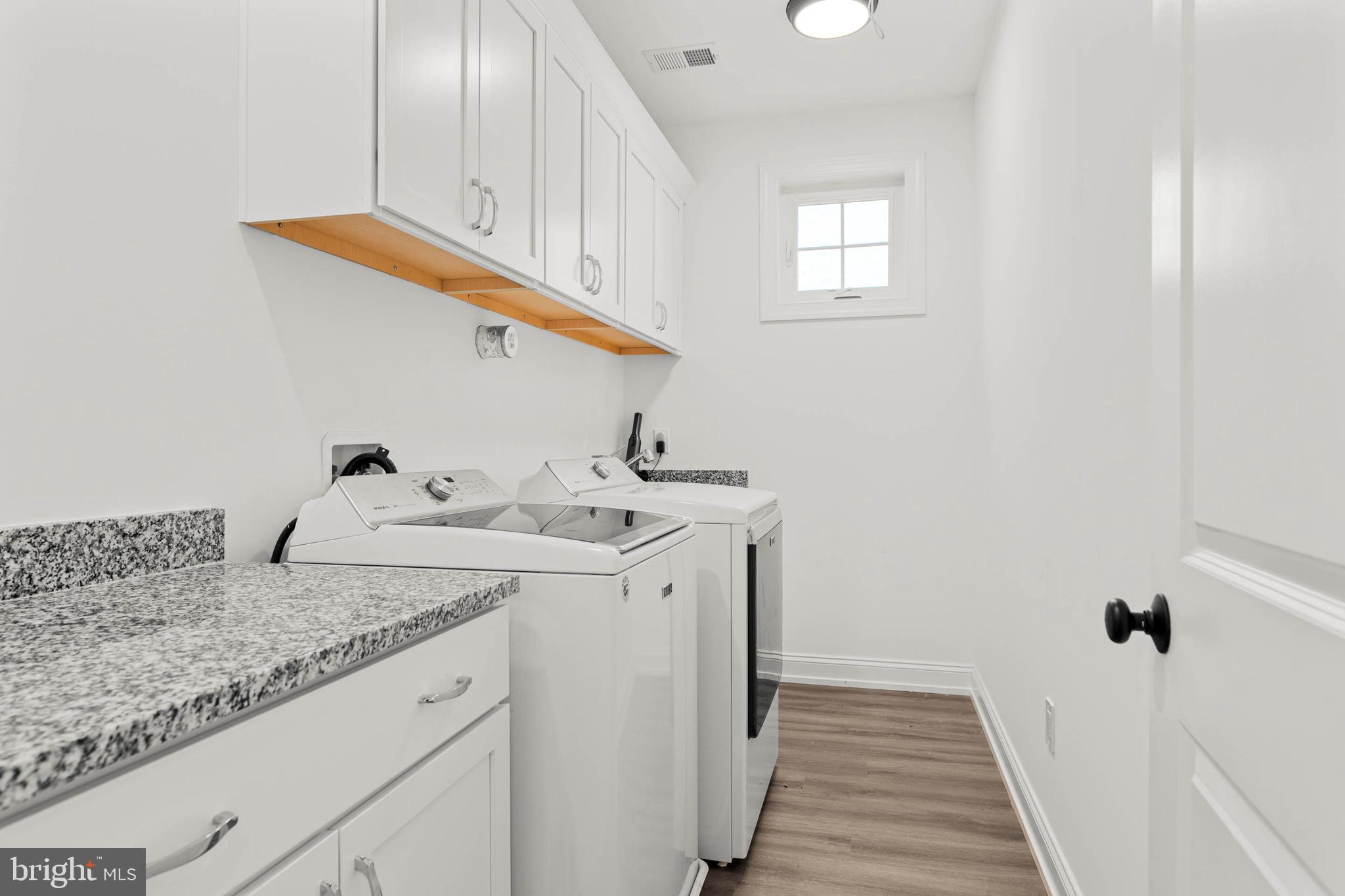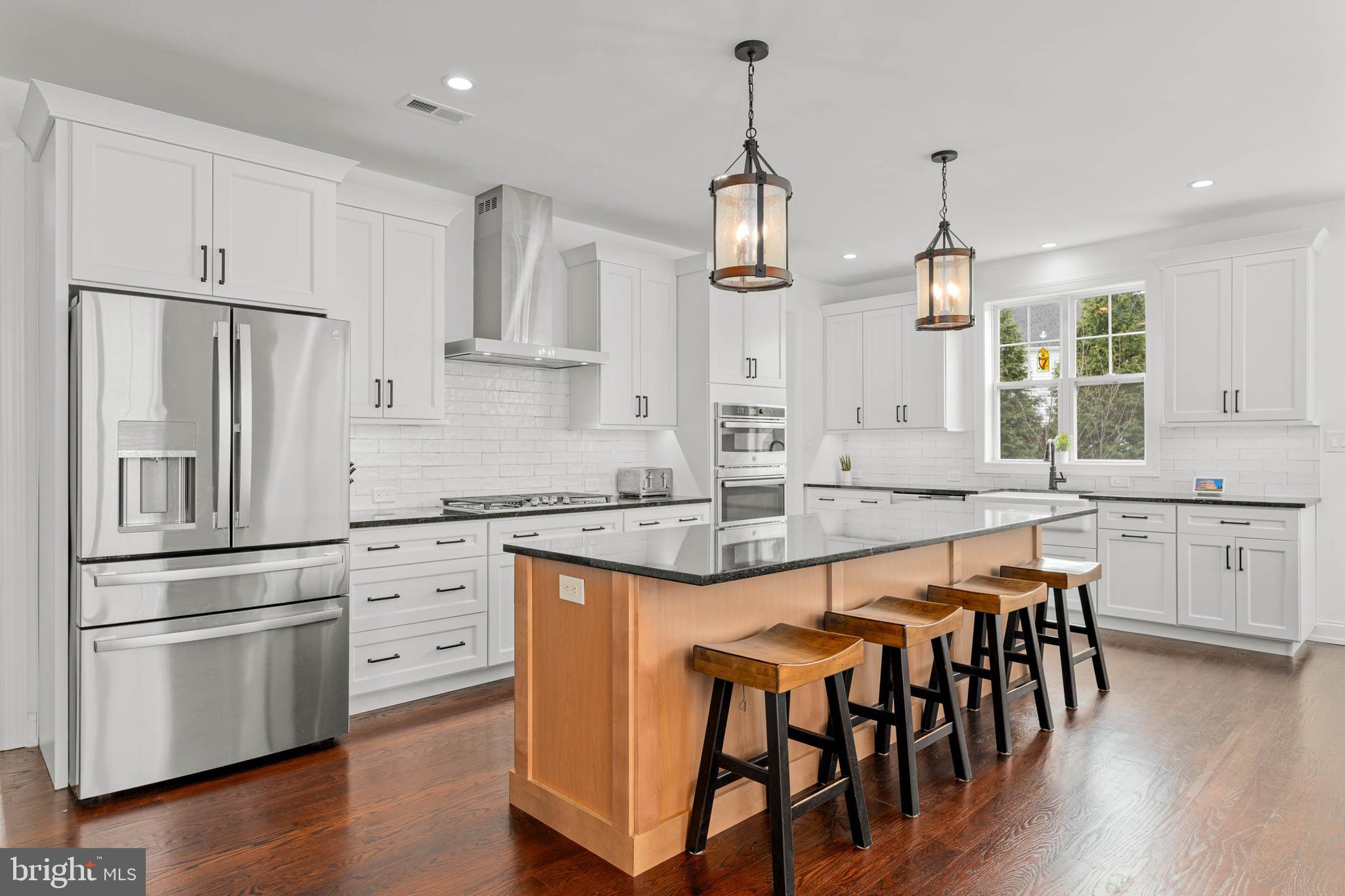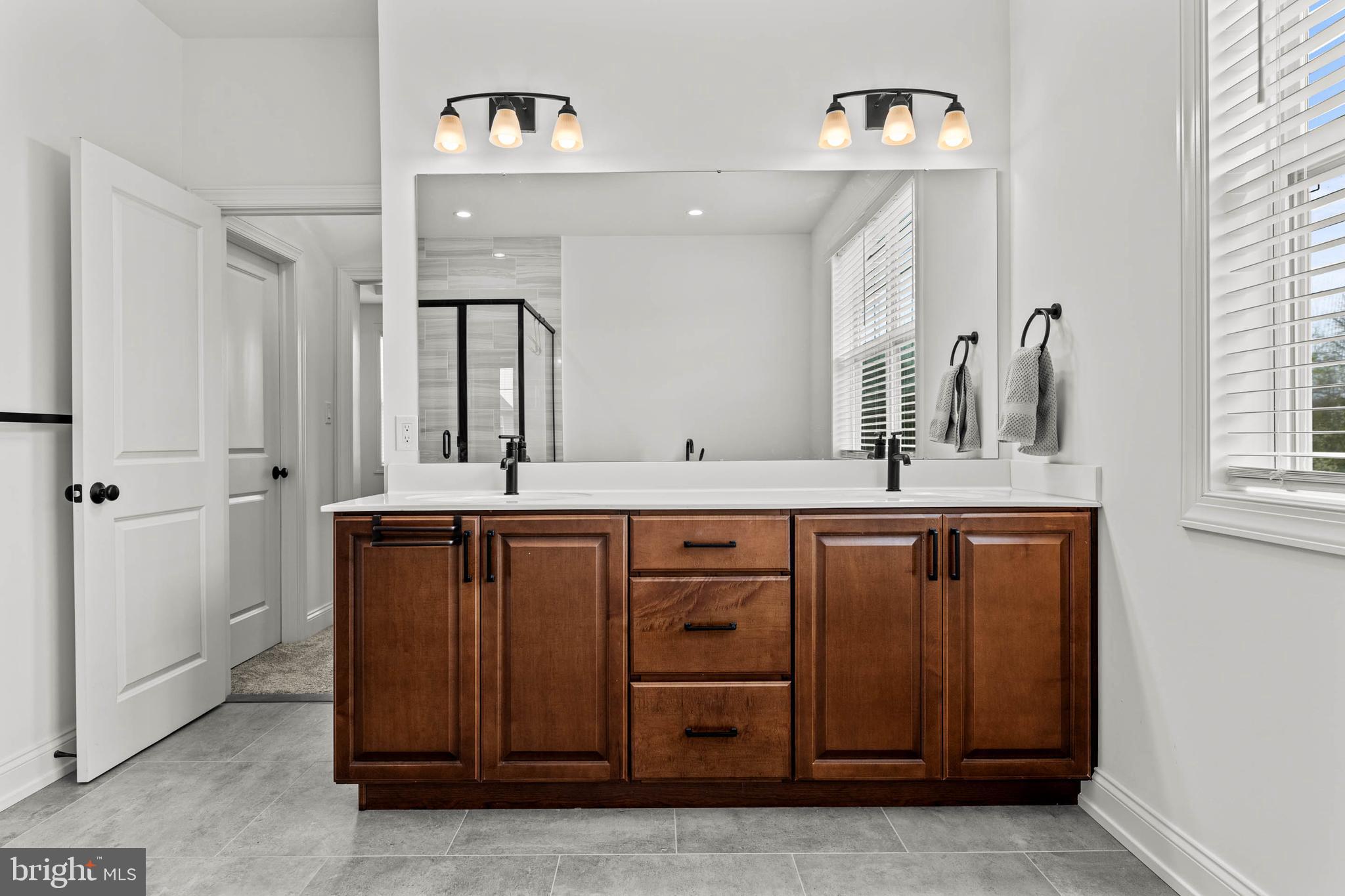 Upstairs, discover four generously sized bedrooms, including the impressive primary suite. This serene retreat features a large bedroom, two large walk-in closets, and a spa-like bathroom complete with dual vanities, a large and stylish soaking tub, and a luxurious glass-enclosed shower. Adding to the convenience of the upper level is a an additional well-appointed full hall bathroom and a large, dedicated laundry room with cabinets, counter space, and a sink.