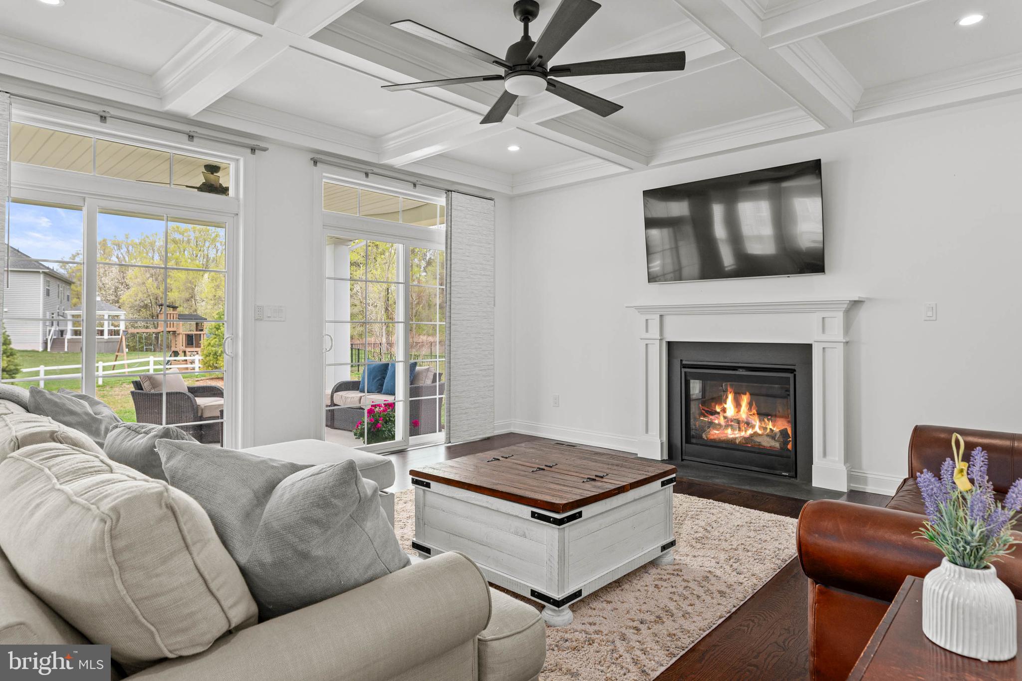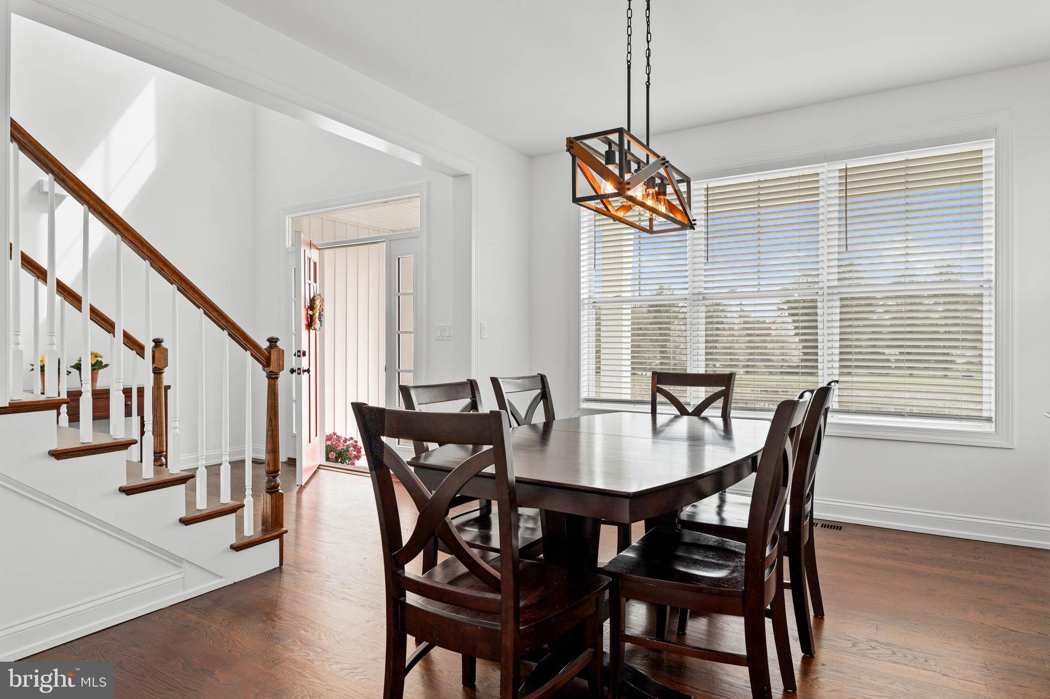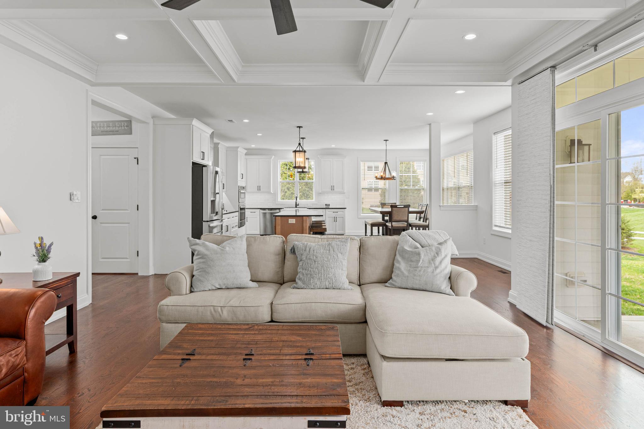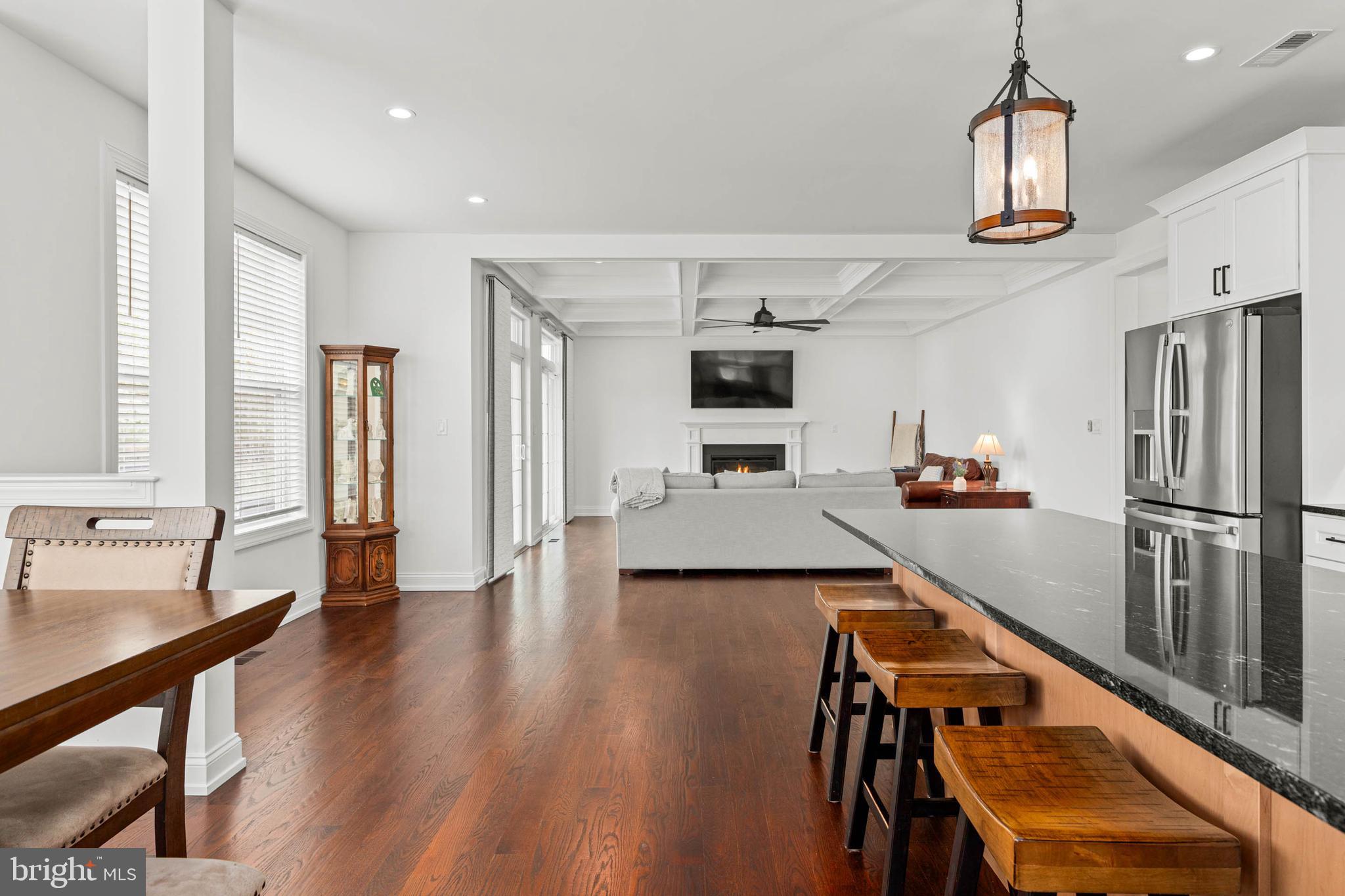 Step onto the welcoming front porch, a perfect spot to relax and take in the beautiful water view and to also greet guests. Inside, the foyer provides a gracious sense of arrival. To the left, the dining room offers a sophisticated space for formal gatherings. Beyond and to the right, the well-designed and convenient mudroom provides direct access to the spacious, attached 2-car garage. This practical space features custom built-ins, providing chic organization for jackets, bags, and everyday accessories, and is conveniently located adjacent to the powder room. The expansive great room unfolds ahead, a central hub for relaxation and connection, seamlessly flowing into the gourmet kitchen. The great room also features an elegant, coffered ceiling and a cozy fireplace. This culinary lover's dream kitchen features a large central island ideal for meal prep and casual interaction. The kitchen is complemented by a well-appointed butler's pantry area with a work area, beverage fridge, and a walk-in pantry that enhances both storage and style for effortless entertaining. Adjacent to the kitchen, a bright seating and breakfast area offers a casual space for dining and conversation. The first floor also boasts a delightful covered back porch adjacent to the great room that overlooks the partially fenced yard, extending your living and entertaining space outdoors.